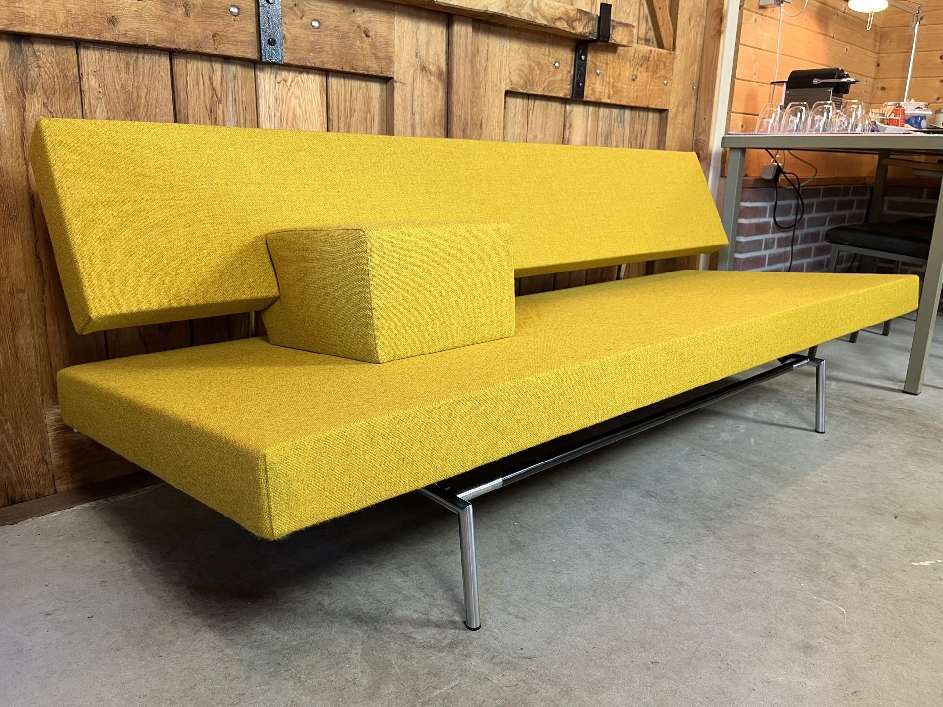 De bank wordt volledig gedemonteerd, waarbij alle oude onderdelen worden verwijderd